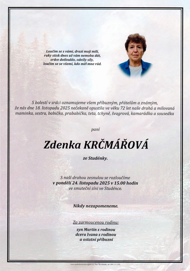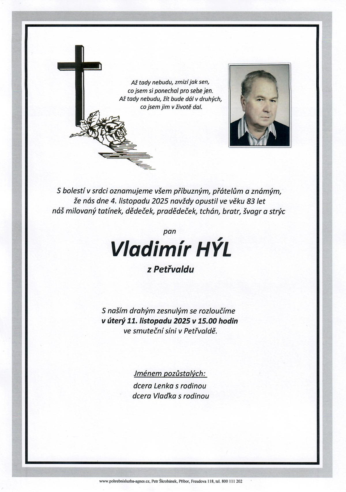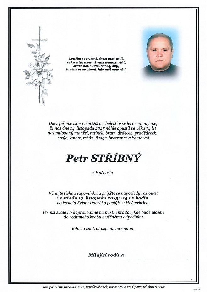 Přehled pohřbů a rozloučení obsahuje pouze ty obřady, u kterých objednavatel vyjádřil souhlas s uveřejněním.