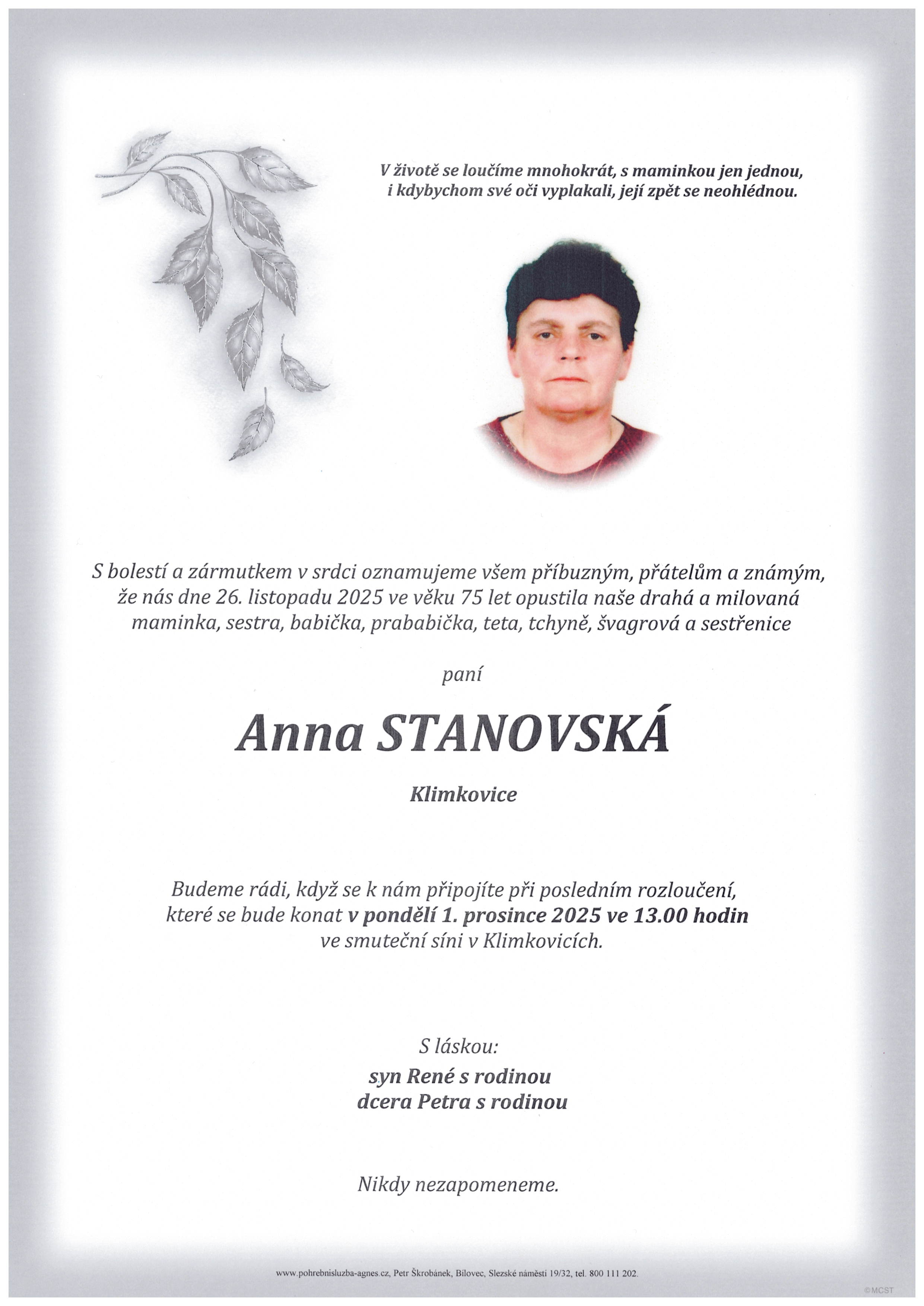 Prosinec 2025 | Pohřební služba St. Agnes, Bílovec, Opava, Hradec nad Moravicí, Studénka, Příbor, Fulnek