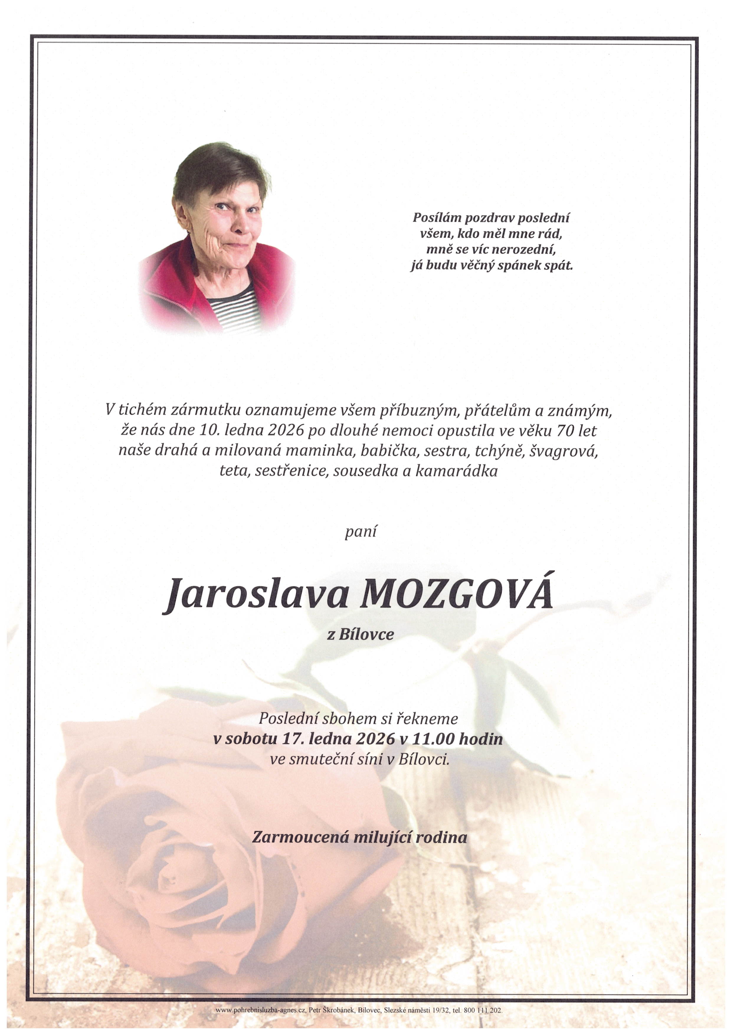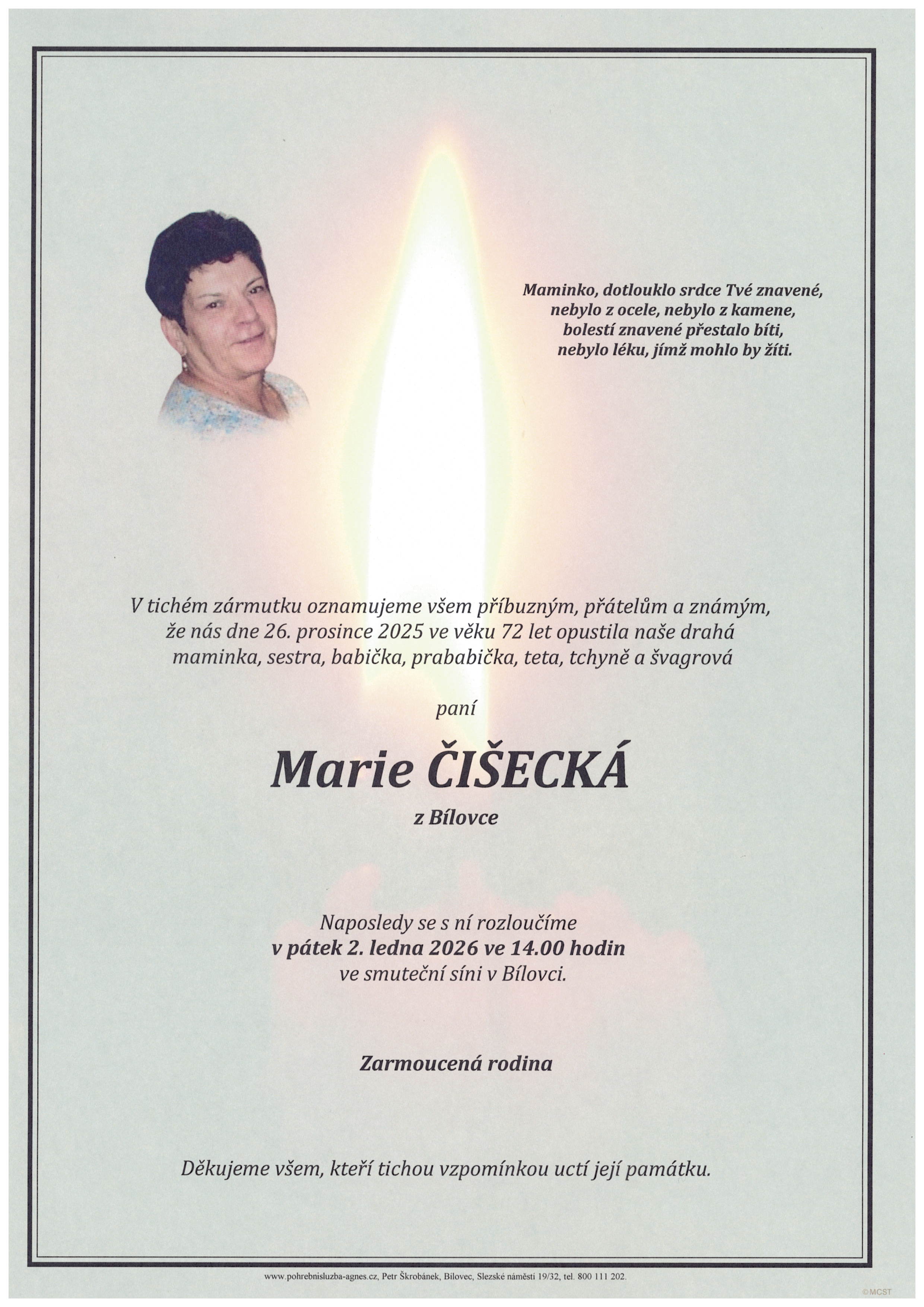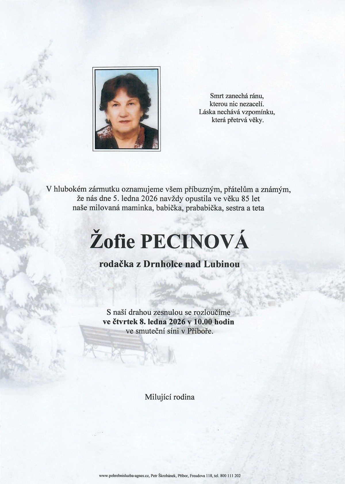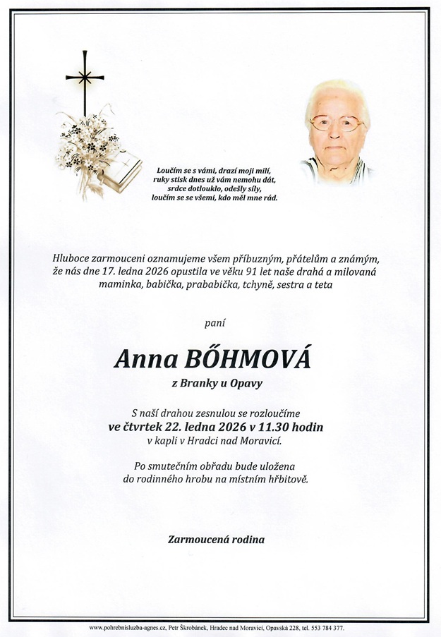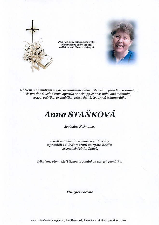 Leden 2026 | Pohřební služba St. Agnes, Bílovec, Opava, Hradec nad Moravicí, Studénka, Příbor, Fulnek
