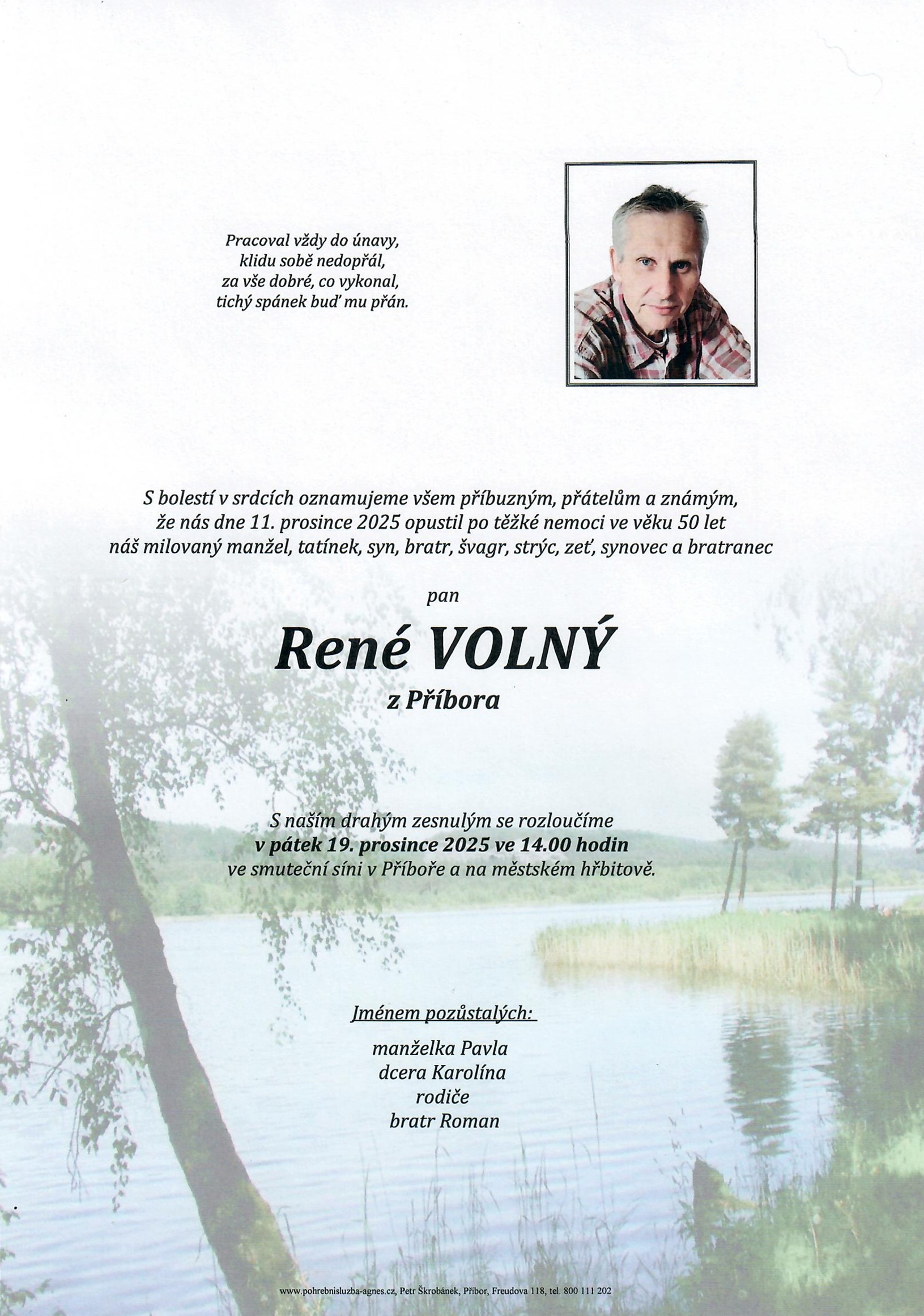 14.00 hodin Smuteční síň Příbor - René Volný, 50 let