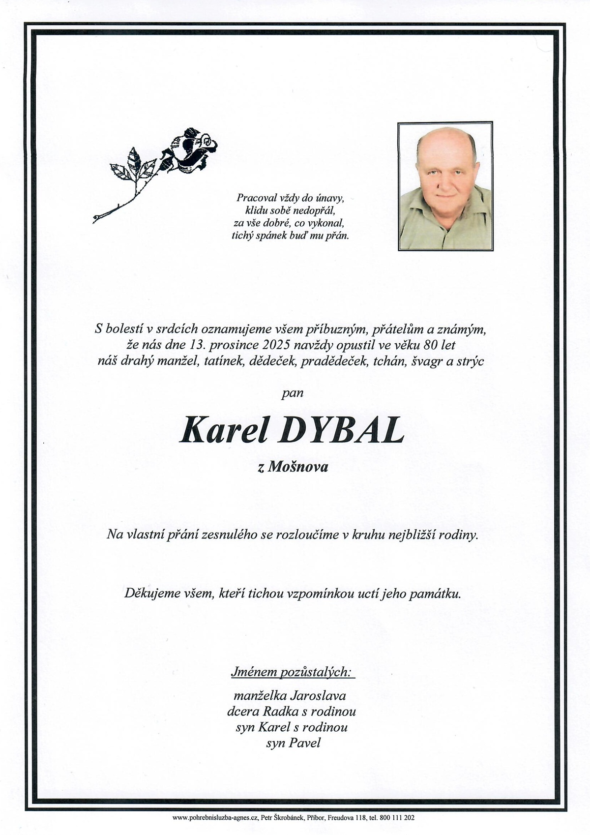 Karel Dybal, 80 let, Mošnov